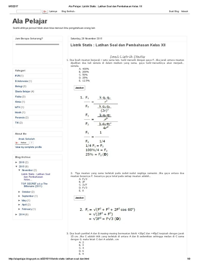 Contoh soal pilihan ganda listrik statis dan pembahasannya blog. K13 antiremed kelas 12 fisika. Soal fisika materi listrik statis kelas xii brainly co id . Diketahui muatan listrik q1 positif dan q2 negatif : Soal dan pembahasan listrik statis fisika kelas xii listrik statis hukum.